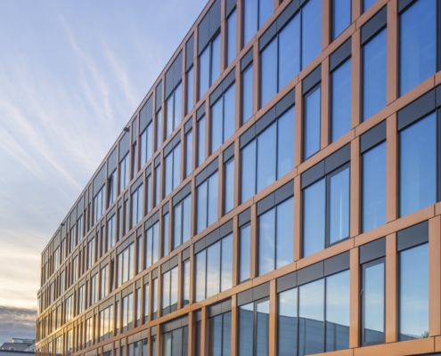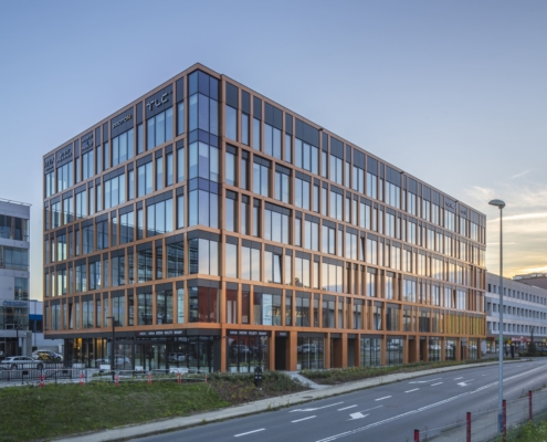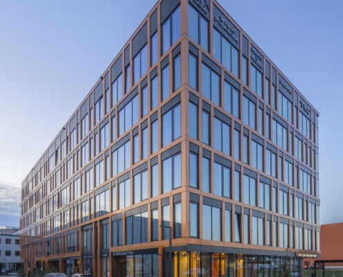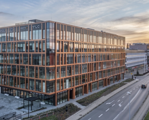 Press Glass carried out the following project together with the Arton company. The facade design was supplied with glazed units based on Silverstar SELEKT 70 T from Euroglas – glass combining high light transmission with effective solar energy control and very good thermal insulation. The glass was toughened to ensure safety and increase the mechanical durability of large glass panes.